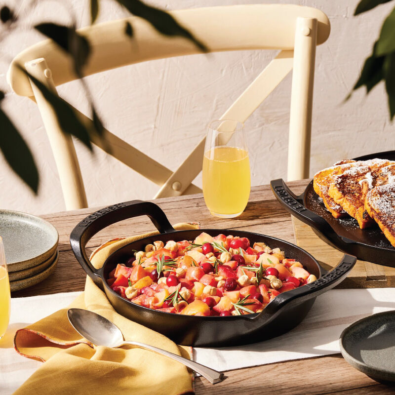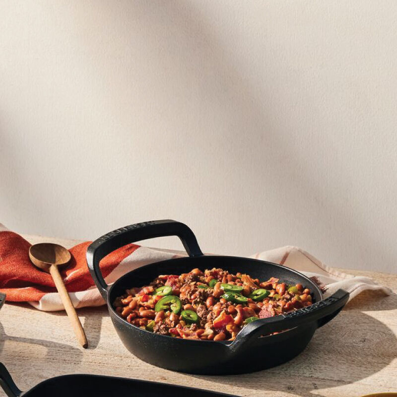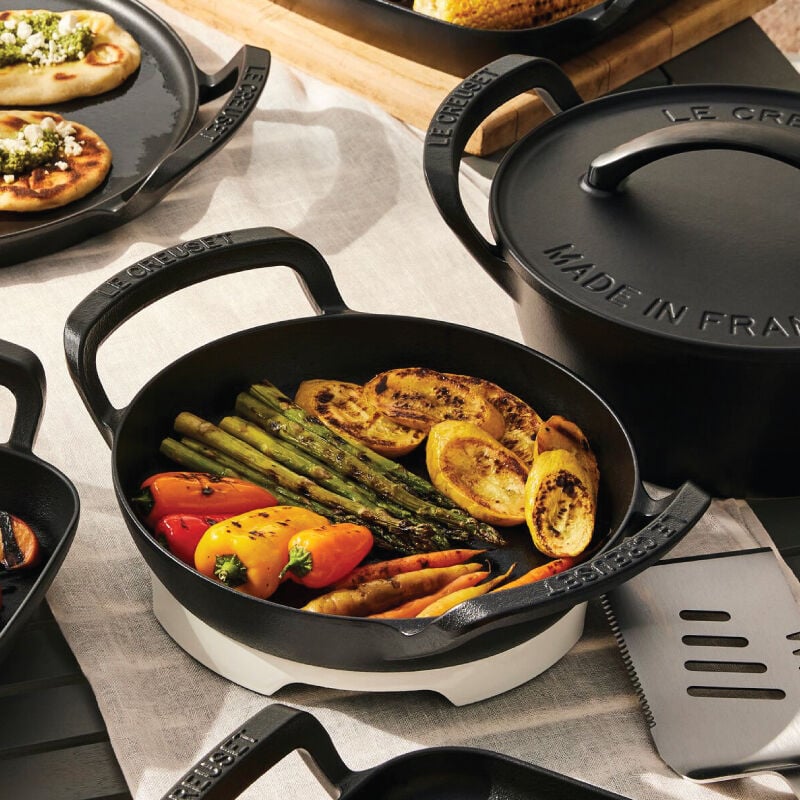 Go beyond the kitchen with the Alpine Outdoor Skillet ¨C a versatile essential for searing, saut¨¦ing, stir-frying and griddling outdoors. Crafted from enameled cast iron and specifically designed for cooking over an open flame, the skillet is completely encased in a rugged matte black enamel that is ready to use and requires no seasoning. It¡¯s perfectly sized to fit on most grills with enough room to grill alongside, and has a generous surface area and angled sides ideal for stirring and flipping. Raised loop handles make it easy to maneuver on the grates, yet with a low-profile design that allows grill hoods to close. Durable and easy to clean, the Alpine Outdoor Skillet is ideal for seared steaks, fried eggs, toasted sandwiches, pancakes and more.