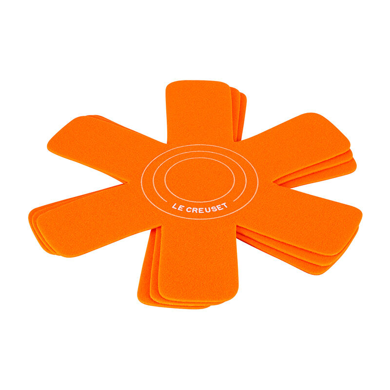 Tough and durable, felt Cookware Protectors provide a soft, cushioned layer between nested or stacked pots and pans when stored. Designed to help prevent chips and scratches, the generously sized 15 3/4¡± star design will accommodate your largest and deepest pots. Or the long-lasting felt fabric can be cut to fit in between smaller sized cookware and will not fray.