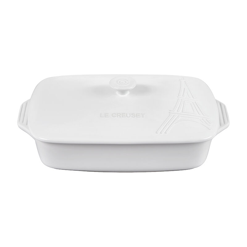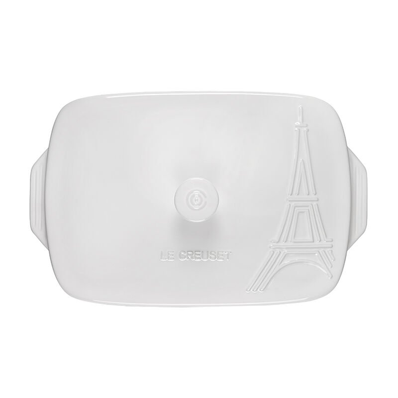 The Eiffel Tower Signature Rectangular Casserole baking dish features an elegant, embossed relief of one of the most iconic monuments in France on the lid. From oven to table, the beautiful design brings a touch of Parisian charm to your kitchen and is perfect for indulgent desserts, comforting casseroles, marinating meats, broiling fish and more. Crafted from premium stoneware, the baking dish is finished with a beautiful glaze which is easy to clean, dishwasher-safe, and resistant to chips, scratches and stains.