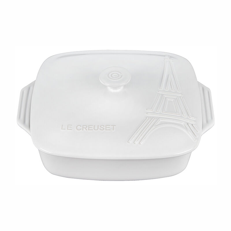 The Eiffel Tower Square Casserole baking dish features an elegant, embossed relief of one of the most iconic monuments in France on the lid. From oven to table, the beautiful design brings a touch of Parisian charm to your kitchen and is perfect for indulgent desserts, comforting casseroles, marinating meats, broiling fish and more. Crafted from premium stoneware, the baking dish is finished with a beautiful glaze which is easy to clean, dishwasher-safe, and resistant to chips, scratches and stains.