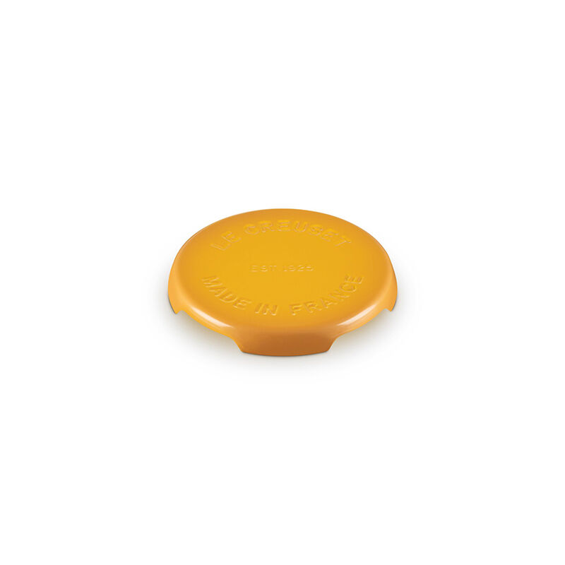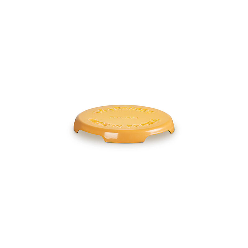 Crafted from the same legendary enameled cast iron and vibrant colors as Le Creuset cookware, the 9-in. round Signature Trivet protects surfaces from heat and condensation. The clever footed design elevates hot dishes, platters and cookware above counters and tables, while also allowing air to circulate underneath. Silicone pads on the feet provide a stable base and help protect surfaces.
