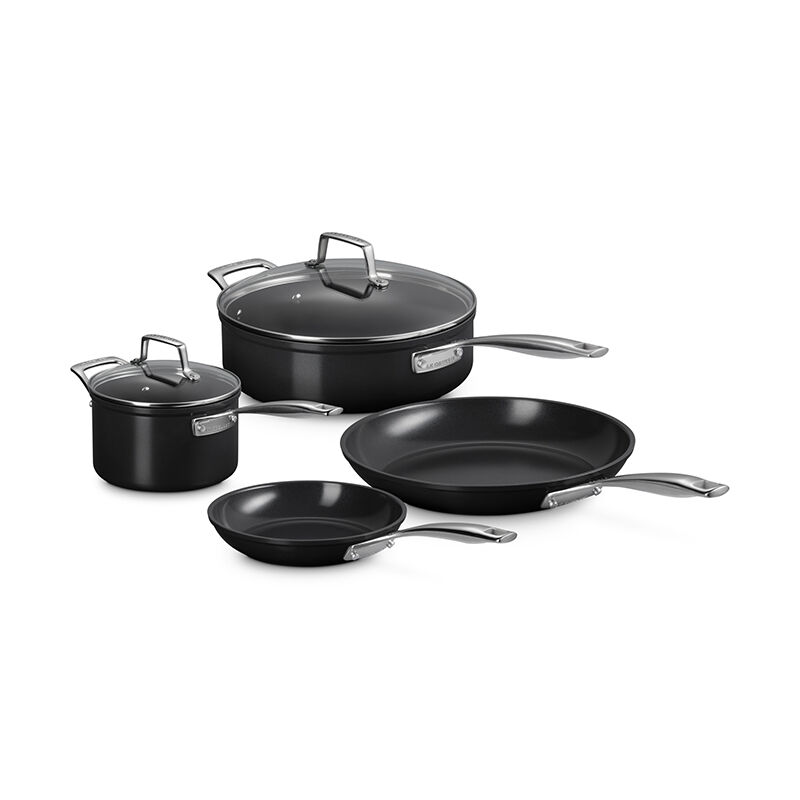 The Essential Non-stick Ceramic 6-piece Cookware Set features our best selling pots and pans, and is perfect for those starting out or outfitting a new home. A trusted cooking companion in the kitchen, it’s ideal for everything from searing fish to saut¨¦ing vegetables, boiling liquids and baking frittatas. The heavy-gauge aluminum core produces excellent heat distribution and retention without hot spots, while the advanced ceramic coating easily releases food and quickly wipes clean. Safe for dishwasher, metal utensils and resistant to scratching, Le Creuset’s non-stick ceramic is the choice for superior performance and effortless cooking.