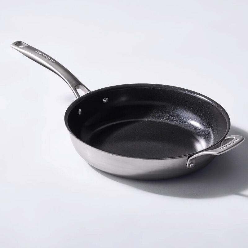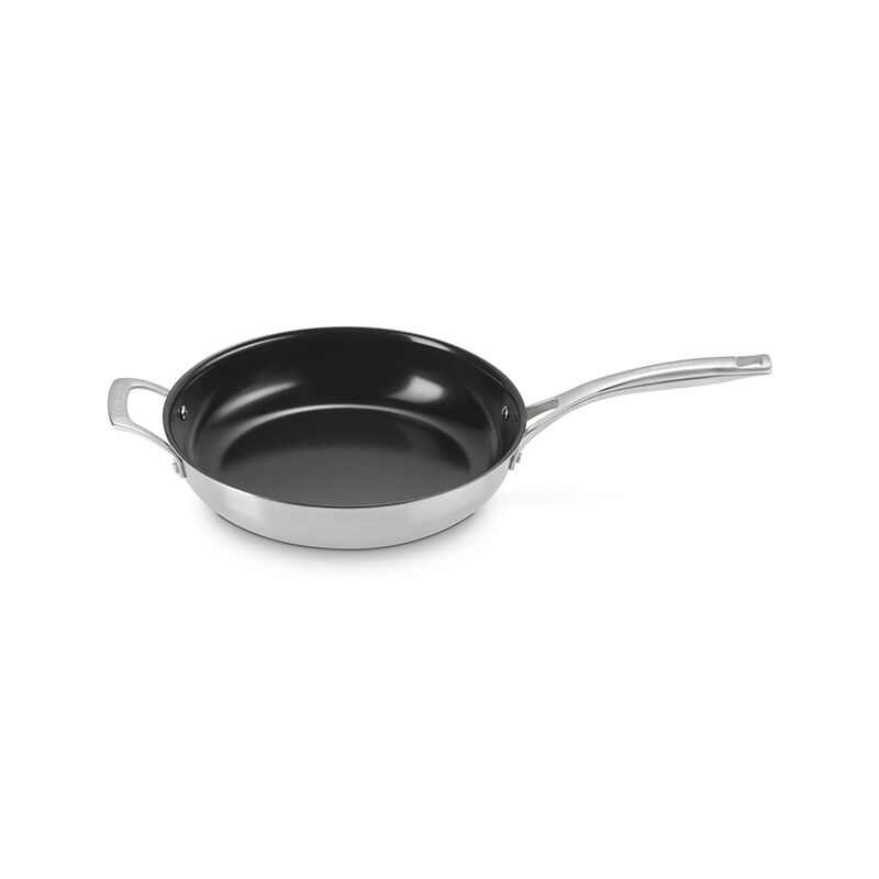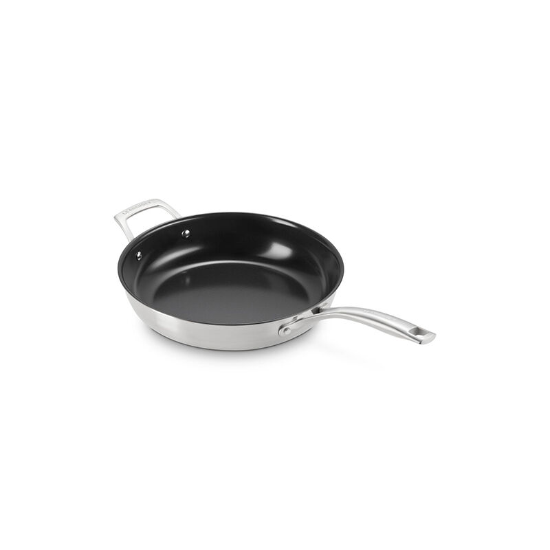 Expertly constructed for everyday versatility, the Essential Stainless Steel Non-stick Frying Pan effortlessly blends form and function. This versatile, tri-ply piece is a staple for everything from searing meats to saut¨¦ing vegetables, elevating your culinary creations with every use. The durable, low maintenance brushed exterior ensures easy cleaning and a hardwearing finish, while the triple-reinforced non-stick coating is ideal for browning and searing, with or without oil.