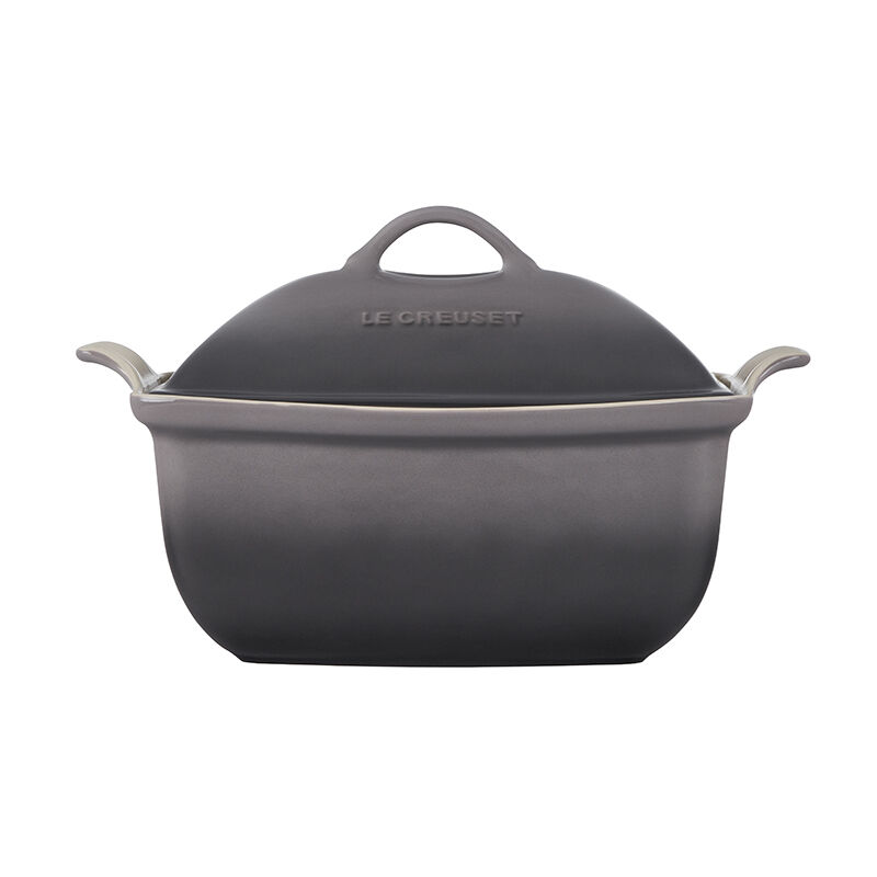 The generous capacity and domed lid of the Heritage Deep Covered Rectangular Baker is ideally designed for roasting everything from whole chickens and lamb shanks to beef and pork roasts. With deep sidewalls, it also has ample space for layered bubbling casseroles, rich desserts, marinating meats and storing leftovers. The stoneware lid locks in moisture and heat while baking to keep food tender and juicy, while the iconic heritage scalloped handles make it easy to transport dishes from fridge to oven to table for serving. Crafted from premium stoneware to ensure food is cooked to perfection, the baking dish features a colorful glaze that is virtually non-stick for easy cleanup.