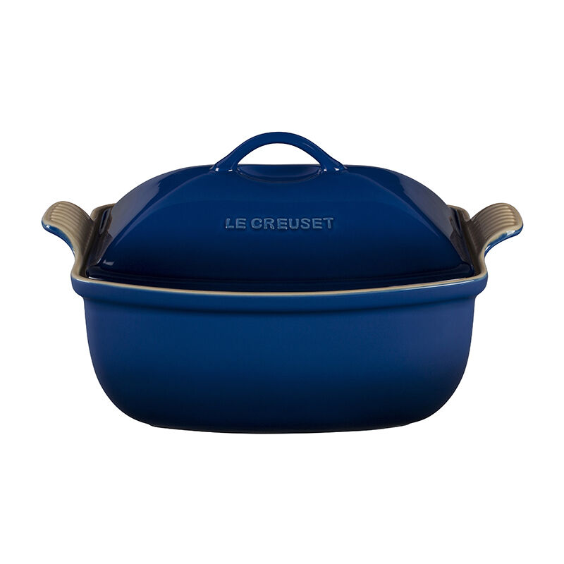 The generous capacity and domed lid of the Heritage Deep Covered Rectangular Baker is ideally designed for roasting everything from whole chickens and lamb shanks to beef and pork roasts. With deep sidewalls, it also has ample space for layered bubbling casseroles, rich desserts, marinating meats and storing leftovers. The stoneware lid locks in moisture and heat while baking to keep food tender and juicy, while the iconic heritage scalloped handles make it easy to transport dishes from fridge to oven to table for serving. Crafted from premium stoneware to ensure food is cooked to perfection, the baking dish features a colorful glaze that is virtually non-stick for easy cleanup.