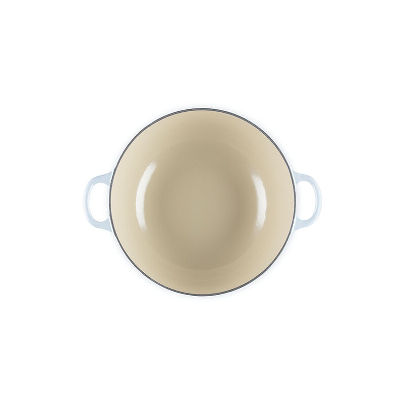 - Light colored smooth interior enamel allows easy monitoring of cooking progress