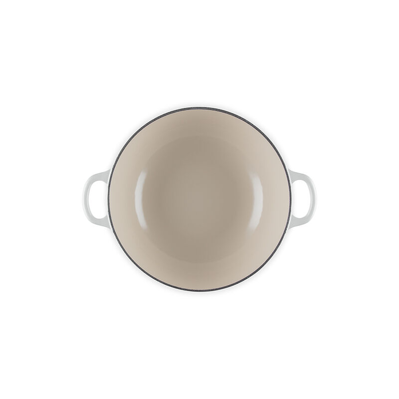 - Light colored smooth interior enamel allows easy monitoring of cooking progress