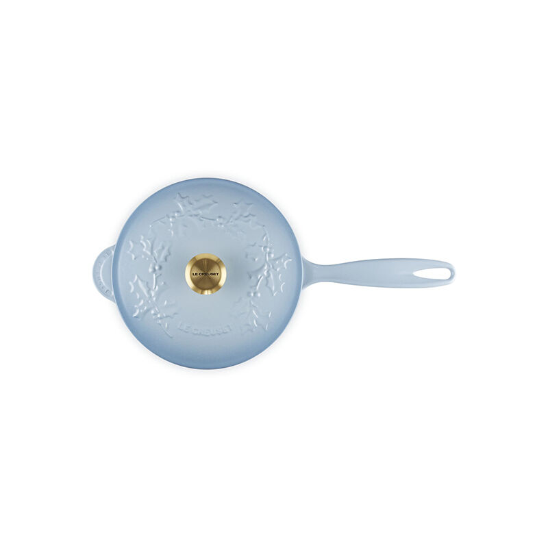 The Holly Collection Traditional Saucier features an elegantly scrolled and embossed holly leaf design that will spread good cheer and joyful style year after year. A chef¡¯s favorite, the Saucier has a smooth contoured interior that is optimal for making merry sauces, side dishes and saut¨¦ing vegetables. Sloping sides and a rounded bottom facilitate stirring and whisking, while the broad surface area allows liquids to evaporate quickly. Crafted from our legendary enameled cast iron, it has exceptional heat distribution and retention qualities to lock in flavor and moisture and keep dishes warm from stove to oven to table. The festive, colorful enameled surface minimizes sticking and staining, requires no pre-seasoning, and is easy-to-clean.