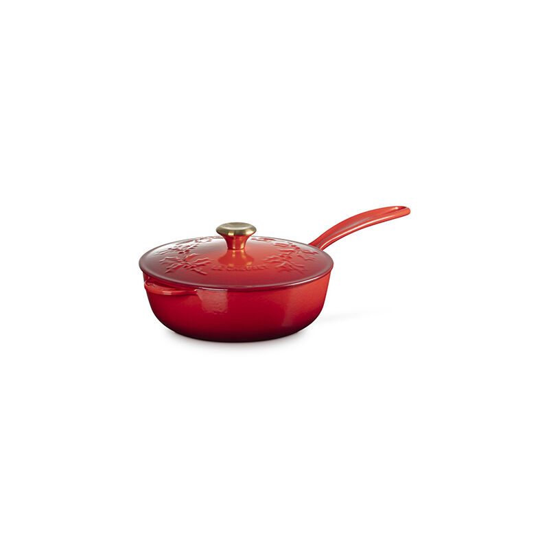 The Holly Collection Traditional Saucier features an elegantly scrolled and embossed holly leaf design that will spread good cheer and joyful style year after year. A chef¡¯s favorite, the Saucier has a smooth contoured interior that is optimal for making merry sauces, side dishes and saut¨¦ing vegetables. Sloping sides and a rounded bottom facilitate stirring and whisking, while the broad surface area allows liquids to evaporate quickly. Crafted from our legendary enameled cast iron, it has exceptional heat distribution and retention qualities to lock in flavor and moisture and keep dishes warm from stove to oven to table. The festive, colorful enameled surface minimizes sticking and staining, requires no pre-seasoning, and is easy-to-clean.
