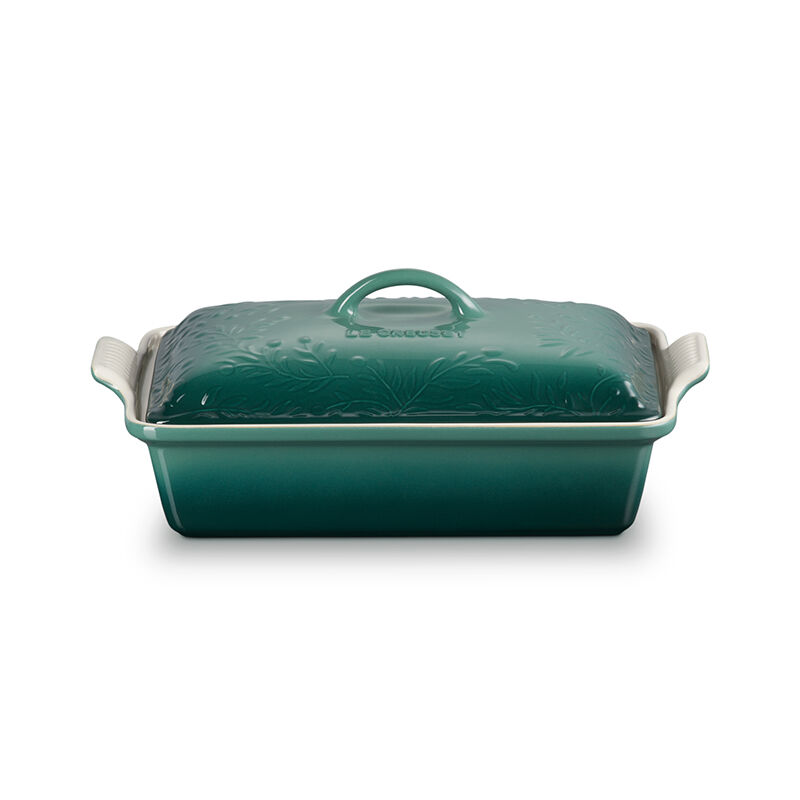 Inspired by the sun-drenched fields of Provence, the Olive Branch Heritage Rectangular Casserole baking dish is embossed with a refined olive branch motif that is a sophisticated addition to any kitchen or table. Both functional and beautiful, it¡¯s perfect for indulgent desserts, comforting casseroles, marinating meats, broiling fish and more. Not only does the stoneware lid lock in moisture and heat while baking, but makes it easy to carry dishes to potlucks and picnics or for storing leftovers ¨C or bring it straight from the oven to the table as an elegant serving piece. Crafted from the finest quality stoneware to ensure food is cooked to perfection, the baking dish features a colorful glaze that is virtually non-stick for easy cleanup.