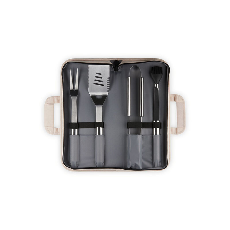 Set of 5 includes: Outdoor Slotted Turner, Outdoor Tongs, Outdoor Two-Pronged Fork, Outdoor Basting Brush and Le Creuset Branded Store and Carry Case