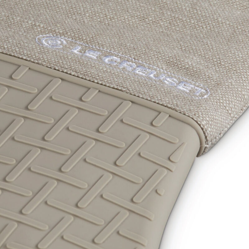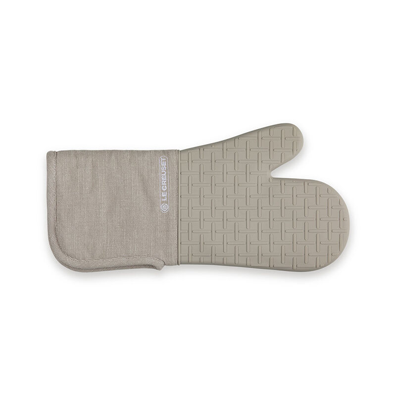 Protect your wrists and forearms from baker???s burn with the Le Creuset Oven Mitt. Crafted from durable, heat-resistant silicone that withstands temperatures up to 550??F and a comfortable terry interior, the thoughtfully designed 15??? mitt provides exceptional coverage when transferring hot pots and pans to and from the oven. Added details include a loop for easy hanging and the Le Creuset-exclusive silicone pattern. Both stylish and practical, this essential cookware and bakeware accessory protects home cooks and chefs alike.