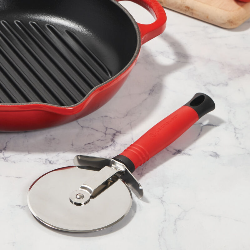 The Revolution Pizza Cutter effortlessly slices through thick and thin crust pizza, flatbreads, quesadillas and more. It’s also perfect for portioning dough and slicing pastry for baking, and cutting perfect strands of homemade pasta. Crafted from hygienic stainless steel with a comfortable silicone handle, the Revolution tools deliver superior comfort and control with a patented elliptical handle that won’t twist in hand. Dishwasher-safe and durable, the tools are engineered for a lifetime of optimal performance.