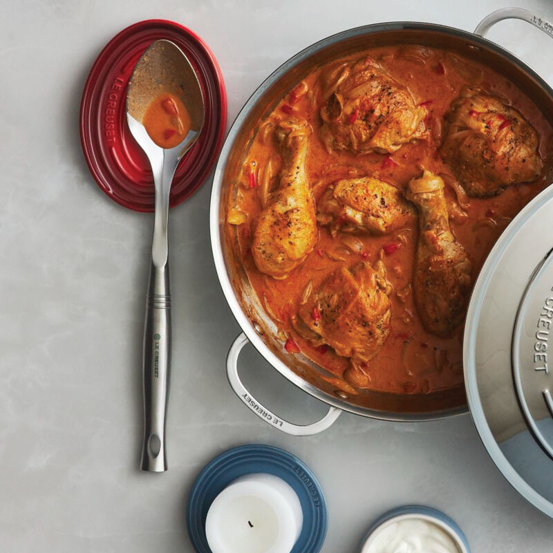 The Revolution Spoon features a bowl which is perfectly sized for both stirring and serving, while the pointed tip easily gets into the bottom corners of cookware and baking dishes. Crafted from premium radiant stainless steel, the serving spoon delivers superior comfort and control with a patented elliptical handle that won’t twist in hand. Dishwasher-safe and durable, Le Creuset Revolution tools are engineered for a lifetime of optimal performance.