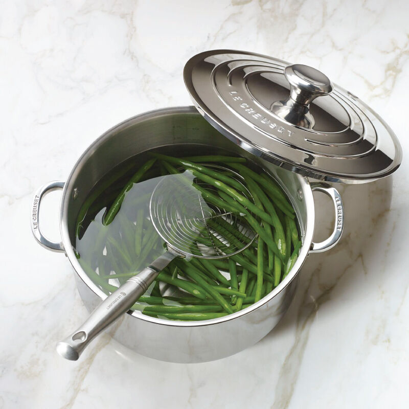 The Revolution Wire Skimmer provides quick and efficient drainage when straining foods out of liquids or for more delicate foods. Crafted from premium radiant stainless steel, the wire skimmer delivers superior comfort and control with a patented elliptical handle that won’t twist in hand. Dishwasher-safe and durable, Le Creuset Revolution tools are engineered for a lifetime of optimal performance.