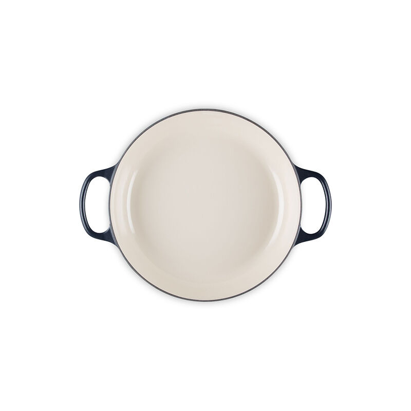 - Light colored smooth interior enamel allows easy monitoring of cooking progress