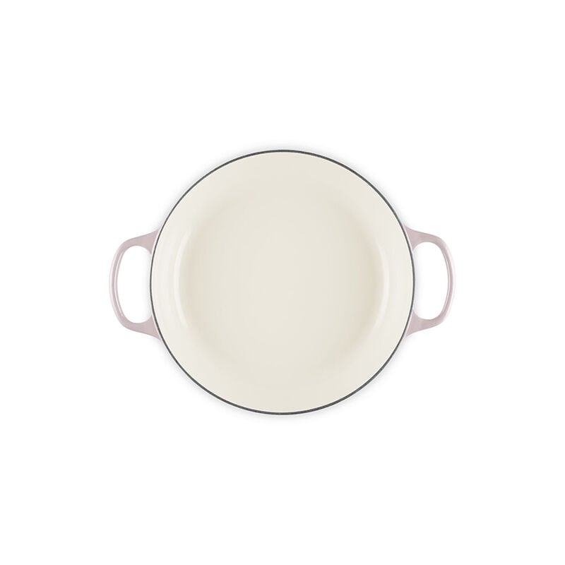 - Light colored smooth interior enamel allows easy monitoring of cooking progress