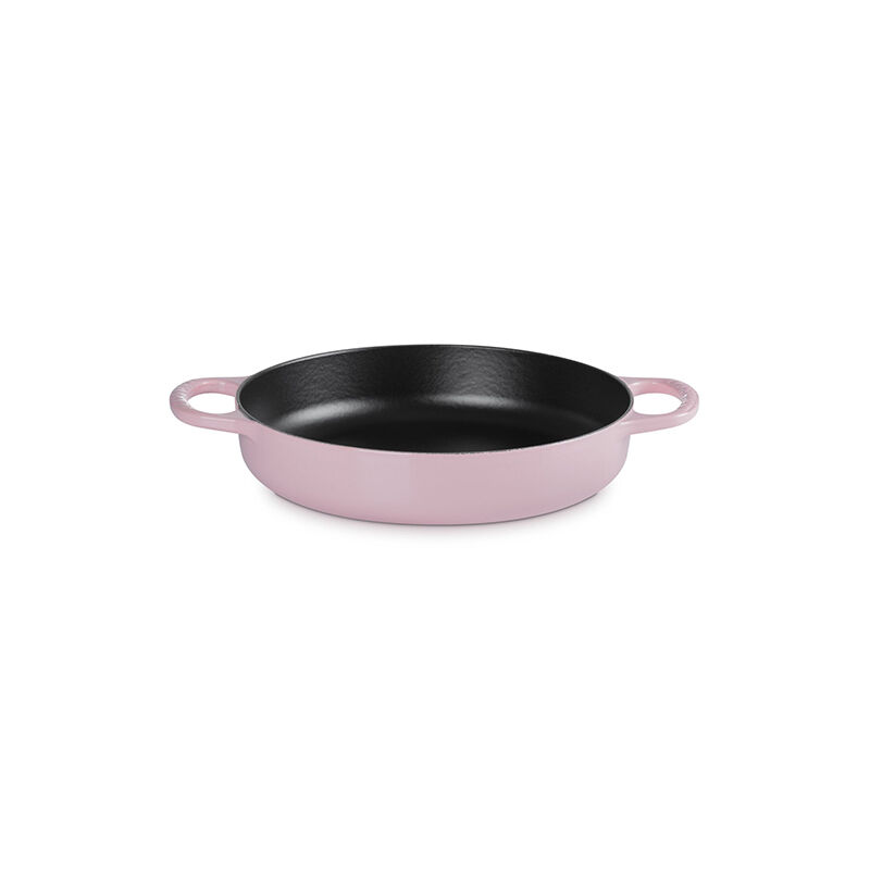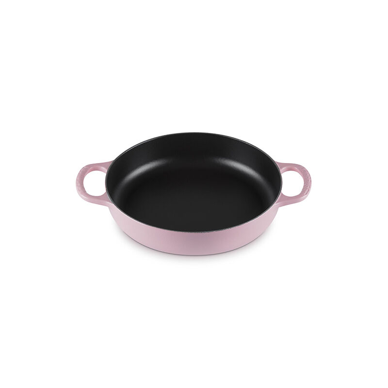 The enameled cast iron Signature Everyday Pan has a generous depth and wide surface area that is perfect for everything from pan roasting and frying to one pan meals, simmering sauces and more ¨C it essentially combines the benefits of a braiser with the ease of use of a fry or saut¨¦ pan. Slightly curved sides make it effortless to stir, flip and serve, while oversized handles provide a secure grip for transferring from stove to oven to table.