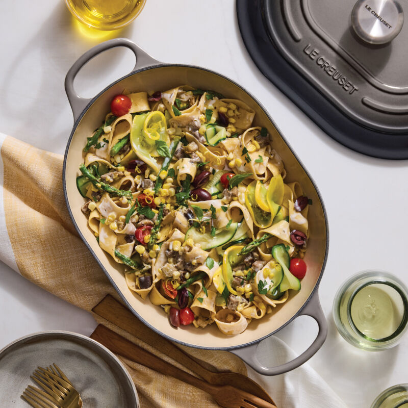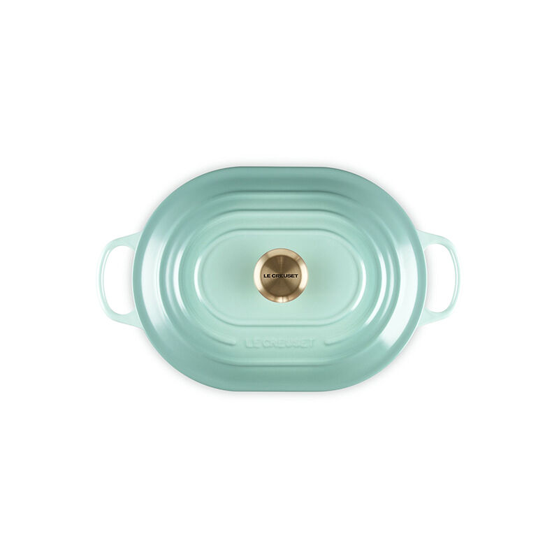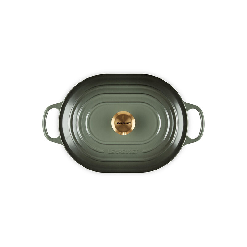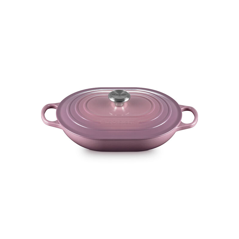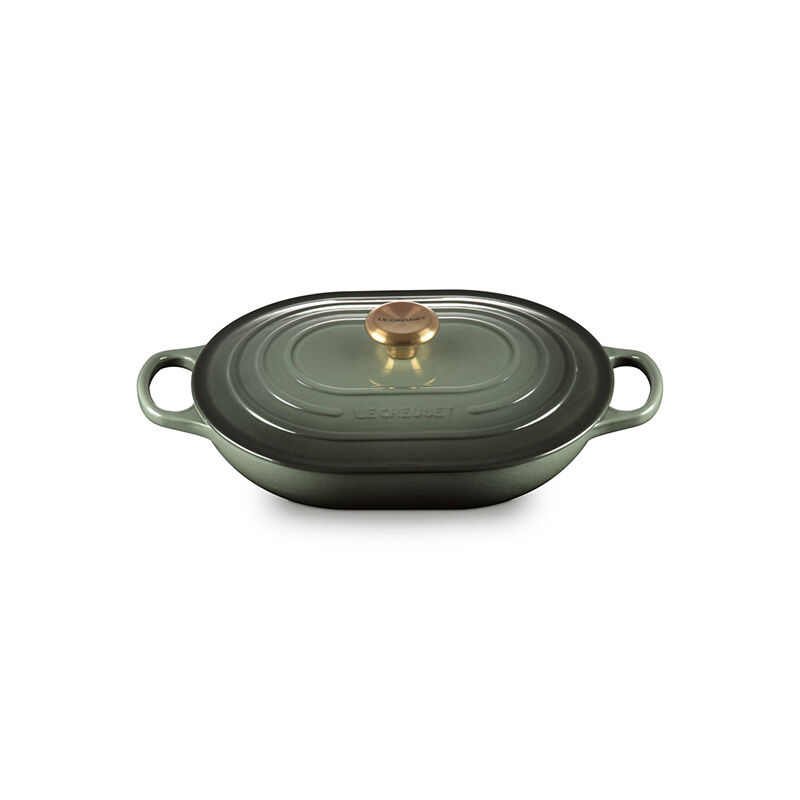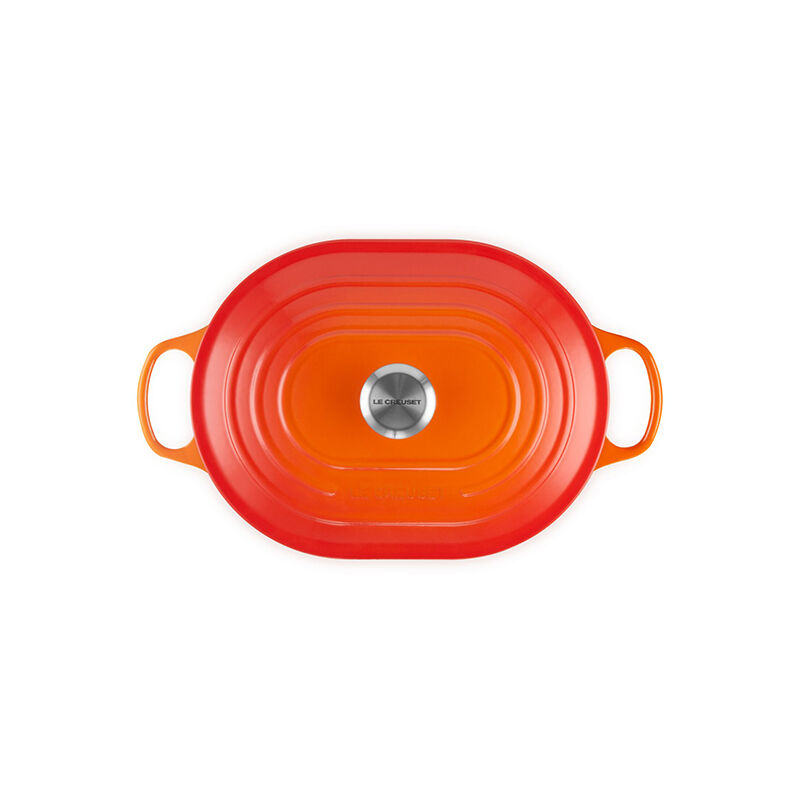 Perfect for saut??|ing, shallow frying, steaming and serving dishes straight to the table, the enameled cast iron Signature Oval Casserole can handle everything from roasts and whole fish to vegetables and side dishes. The elongated oval shape is ideal for larger cuts of meat, hearty stews and baked casseroles meant to share. The sloped sides and wide cooking surface make stirring and serving a breeze. Use it with the lid as a traditional casserole for family meals, or without as a roaster or buffet dish when entertaining guests.