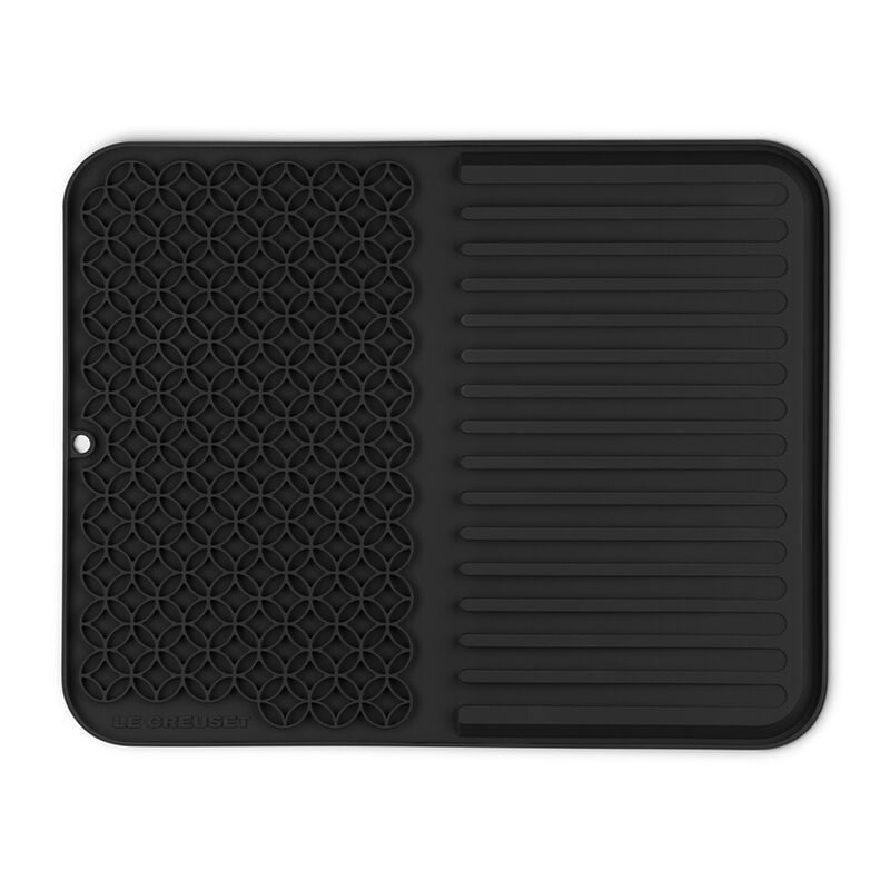 The Silicone Dish Mat is a stylish and functional addition to any kitchen. Generously sized to fit most Le Creuset products, the unique design accommodates both accessories and glassware on one side as well as cookware and lids on the other. Raised ridges aid in the drying process, while a rim keeps drips and run-off contained. Flexible and versatile as a trivet or cooling rack, the durable Silicone Dish Mat resists stains, odors and flavor absorption, and is heat-resistant to 482¡ãF.