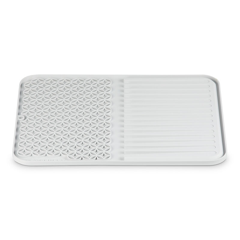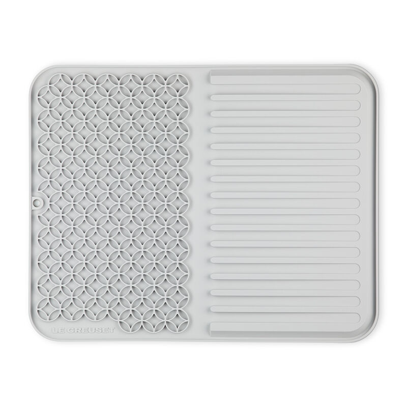The Silicone Dish Mat is a stylish and functional addition to any kitchen. Generously sized to fit most Le Creuset products, the unique design accommodates both accessories and glassware on one side as well as cookware and lids on the other. Raised ridges aid in the drying process, while a rim keeps drips and run-off contained. Flexible and versatile as a trivet or cooling rack, the durable Silicone Dish Mat resists stains, odors and flavor absorption, and is heat-resistant to 482??F.