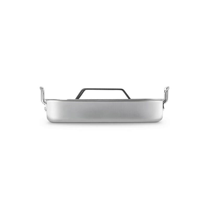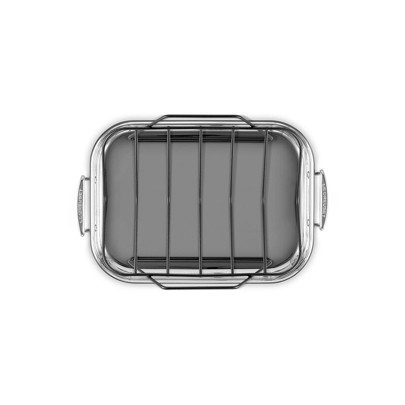 The Stainless Steel Roaster is ideal for roasting meats and vegetables, baking casseroles and desserts, and making pan gravy on the stove. Expertly constructed for long-lasting durability, the thick non-reactive stainless steel will not warp and is dishwasher-safe. The roaster has a dripless pouring rim to minimize spills, and comes with a non-stick rack to promote air circulation, even heating, and a golden brown crust.