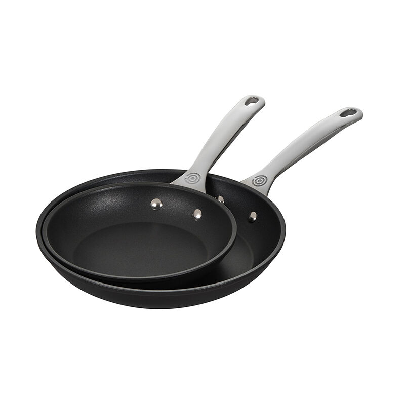 Large set includes: 9 1/2¡± fry pan and 11¡± fry pan