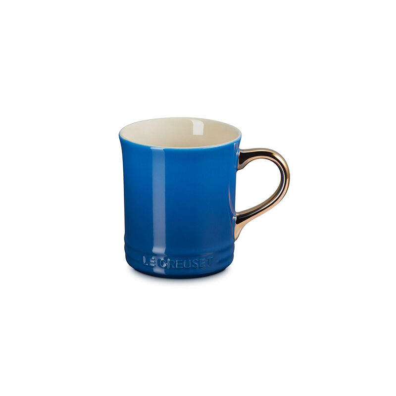 Le Creuset’s best-selling Vancouver Mug with Gold Handle is an elegant addition to any home, for any occasion. With a generous 14 fluid-ounce capacity, it’s ideal for keeping coffee, tea, hot chocolate, and even single servings of soup or dessert, warm or cold. Crafted from the finest quality stoneware, it’s finished with a vibrant glaze and gleaming handle dipped in real gold. The glaze is easy to clean, and resistant to scratches, chips and metal markings.