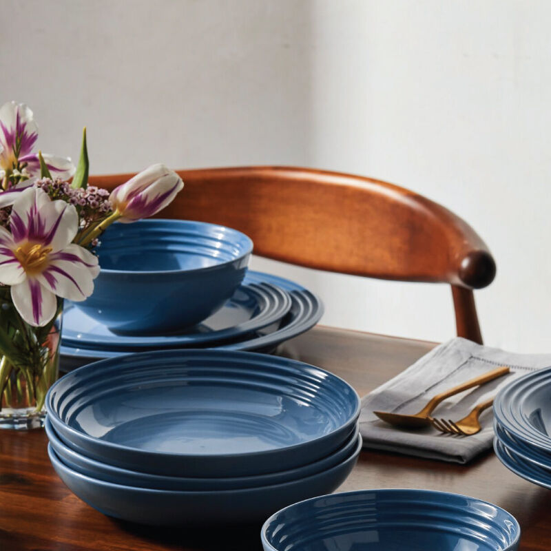 As vibrant and beautiful as the city itself, Le Creuset’s best-selling Vancouver Pasta Bowls are a casually colorful staple for modern dining in any home, for any occasion. They’re available in two generous sizes which are ideal for a variety of pastas, salads and side dish recipes. Crafted from the finest quality high-fired stoneware, each piece is finished with our innovative, multi-layer glazing process for a smoother finish that is easy to clean, dishwasher-safe, and resistant to scratches, chips and metal markings.