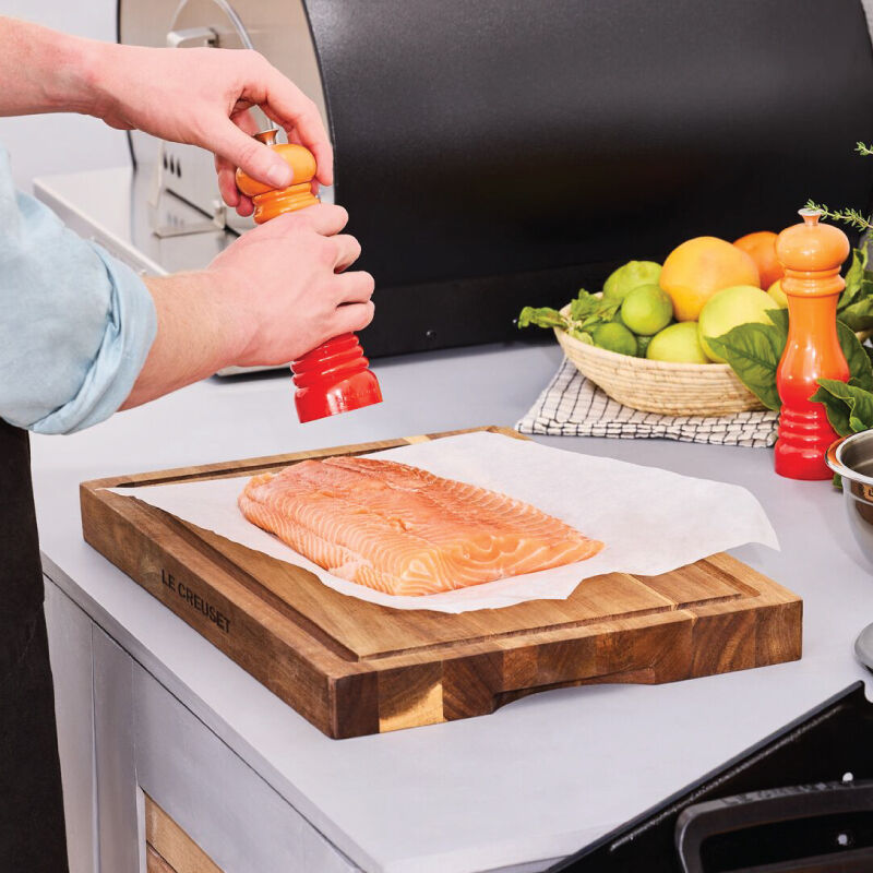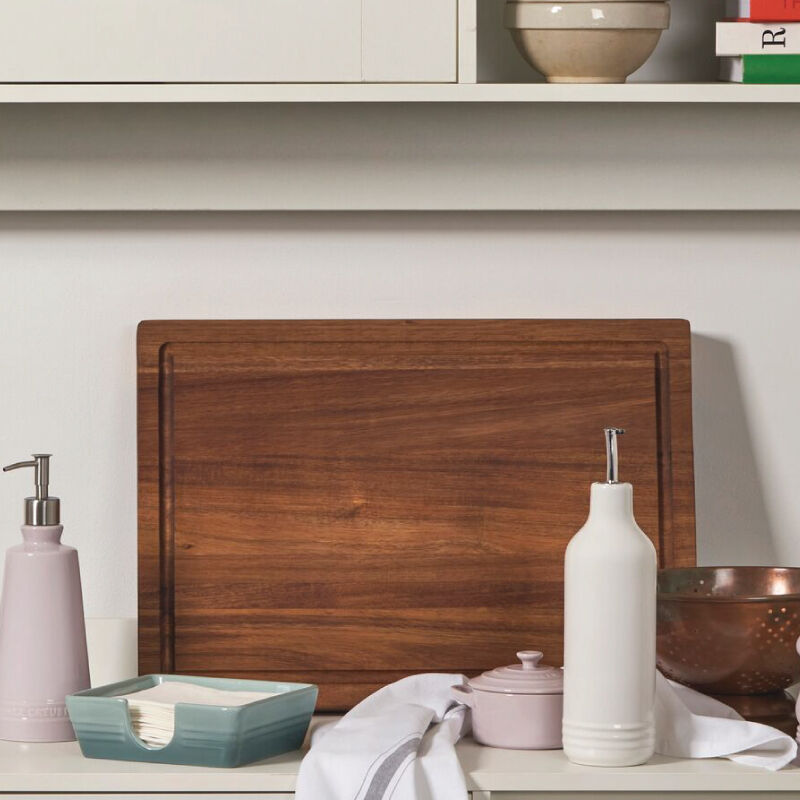 The Acacia Wood Butcher Block is a versatile essential crafted for both functionality and style. Its spacious surface is perfect for heavy-duty cutting and carving, featuring an indented rim to catch liquids and keep countertops clean. Crafted from beautiful acacia wood, this piece also doubles as an elegant entertaining centerpiece, ideal for serving appetizers, cheese and charcuterie, fruit, desserts and more.