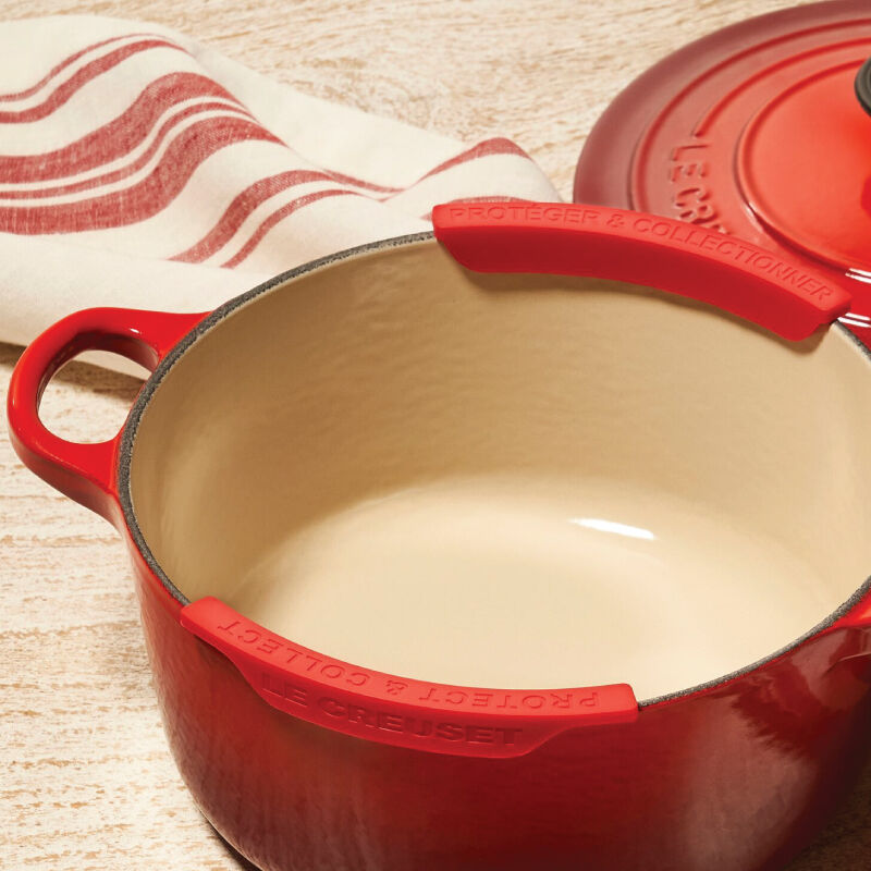 Designed for cooks and collectors alike, these silicone tabs offer a seamless way to protect your Le Creuset cookware while maximizing storage. They sit securely on the rim of your enameled cast iron, creating a gentle barrier between the base and lid when stored inverted. By helping prevent chips, scratches and wear, they keep your most cherished pieces as timeless as the recipes they hold.