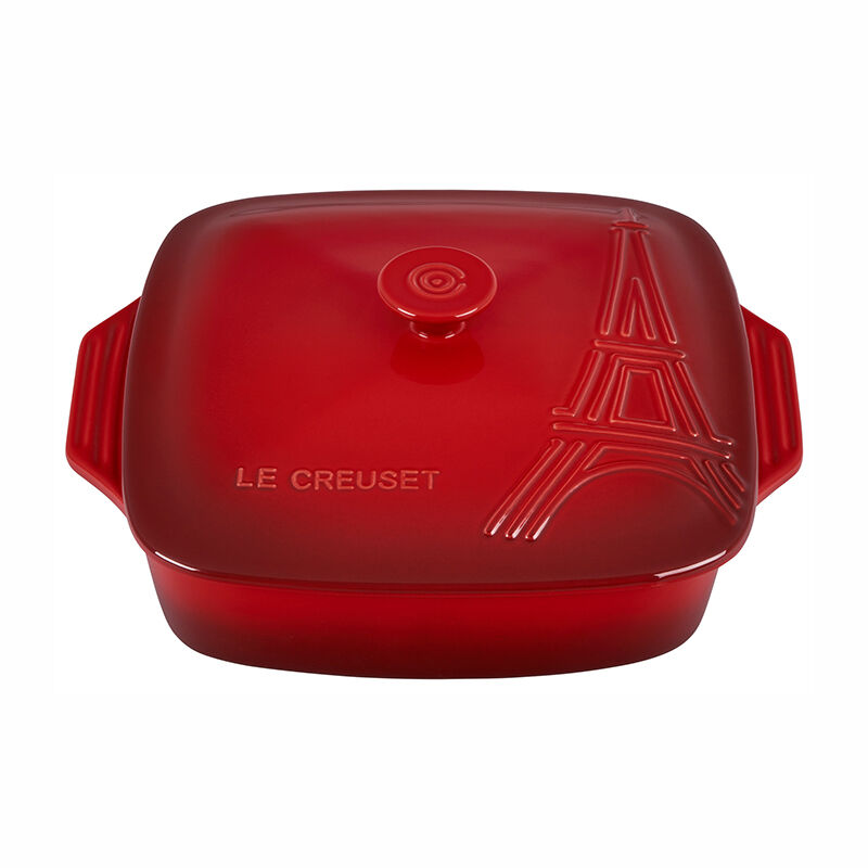 The Eiffel Tower Square Casserole baking dish features an elegant, embossed relief of one of the most iconic monuments in France on the lid. From oven to table, the beautiful design brings a touch of Parisian charm to your kitchen and is perfect for indulgent desserts, comforting casseroles, marinating meats, broiling fish and more. Crafted from premium stoneware, the baking dish is finished with a beautiful glaze which is easy to clean, dishwasher-safe, and resistant to chips, scratches and stains.