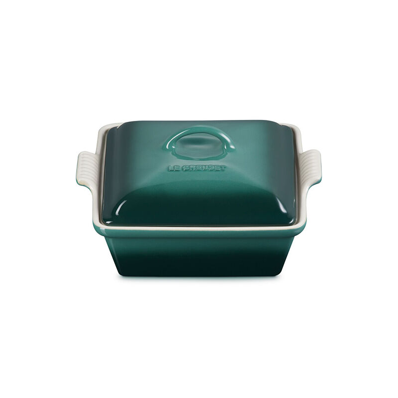From oven to table, the beautiful design of the covered Heritage Square Casserole baking dish is perfect for indulgent desserts, comforting casseroles, marinating meats, broiling fish and more. Not only does the stoneware lid lock in moisture and heat while baking, but makes it easy to carry dishes to potlucks and picnics, or for storing leftovers. Crafted from premium stoneware to ensure food is cooked to perfection, the dishes feature a colorful glaze that is virtually non-stick for easy cleanup.