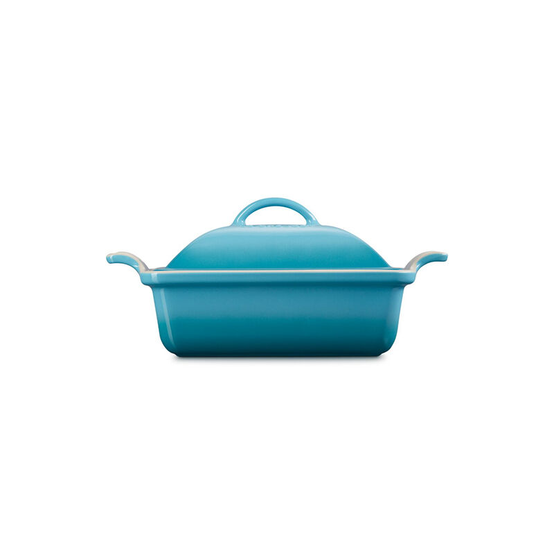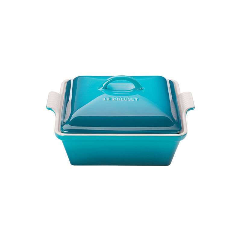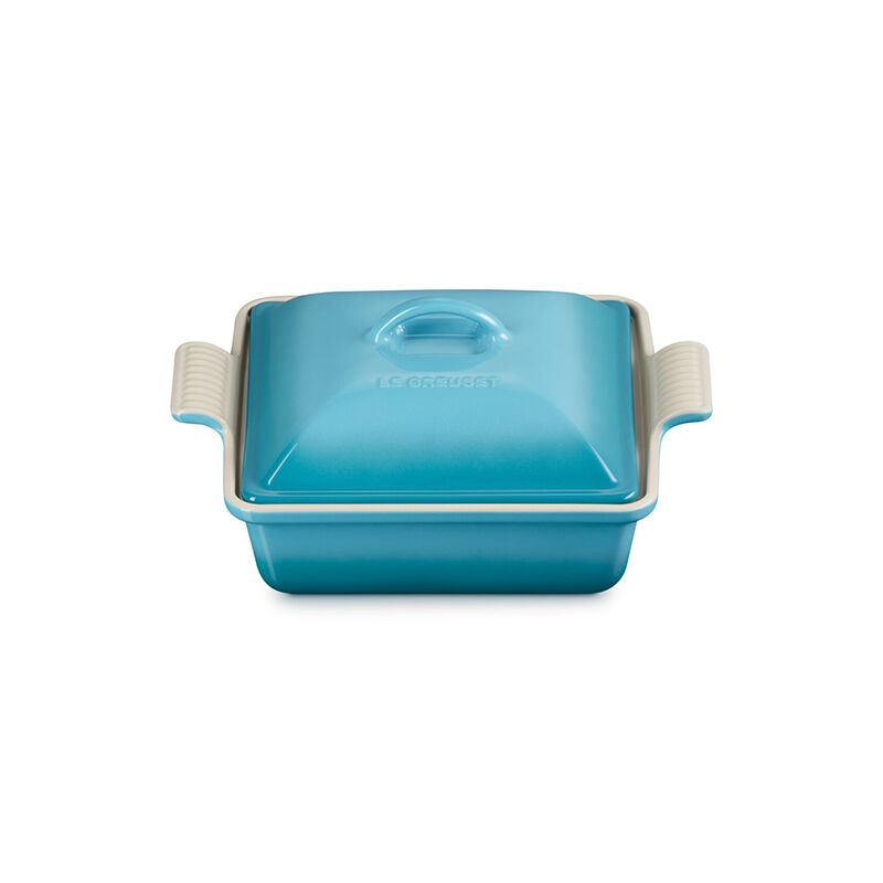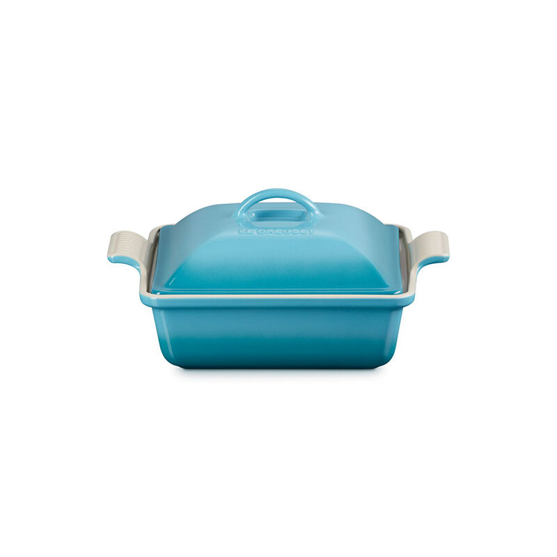 From oven to table, the beautiful design of the covered Heritage Square Casserole baking dish is perfect for indulgent desserts, comforting casseroles, marinating meats, broiling fish and more. Not only does the stoneware lid lock in moisture and heat while baking, but makes it easy to carry dishes to potlucks and picnics, or for storing leftovers. Crafted from premium stoneware to ensure food is cooked to perfection, the dishes feature a colorful glaze that is virtually non-stick for easy cleanup.