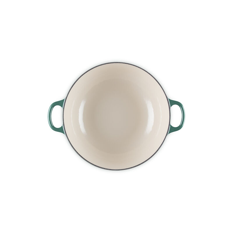 - Light colored smooth interior enamel allows easy monitoring of cooking progress