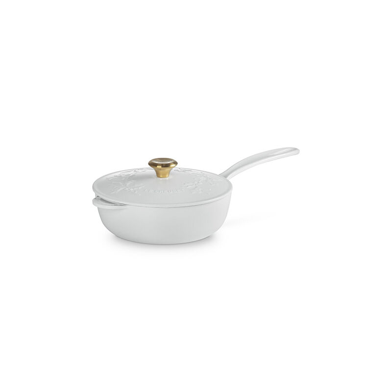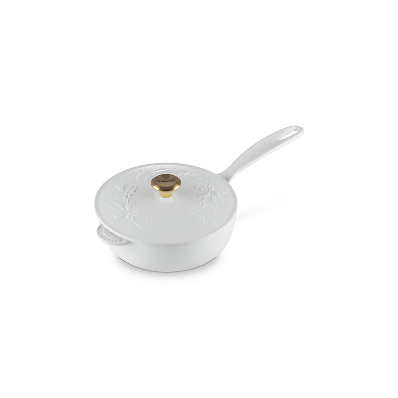 The Holly Collection Traditional Saucier features an elegantly scrolled and embossed holly leaf design that will spread good cheer and joyful style year after year. A chef¡¯s favorite, the Saucier has a smooth contoured interior that is optimal for making merry sauces, side dishes and saut¨¦ing vegetables. Sloping sides and a rounded bottom facilitate stirring and whisking, while the broad surface area allows liquids to evaporate quickly. Crafted from our legendary enameled cast iron, it has exceptional heat distribution and retention qualities to lock in flavor and moisture and keep dishes warm from stove to oven to table. The festive, colorful enameled surface minimizes sticking and staining, requires no pre-seasoning, and is easy-to-clean.
