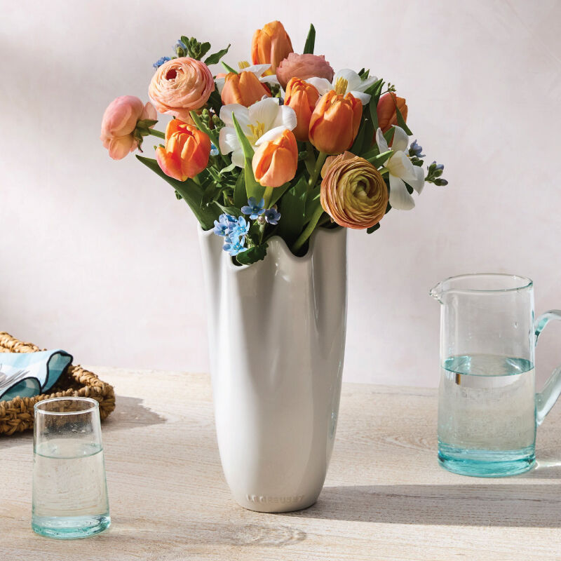 Add a touch of timeless charm to your kitchen with the Iris Collection Ruffle Vase. With an elegant, ruffled edge, this vase brings a touch of springtime joy to the kitchen all year round. Its thoughtfully designed size makes it ideal for showcasing fresh blooms, fragrant herbs, or seasonal arrangements straight from your garden. Crafted from the finest quality stoneware in our iconic colors, the vase is finished with a vibrant glaze which is easy to clean, dishwasher-safe, and resistant to chips, scratches and stains.