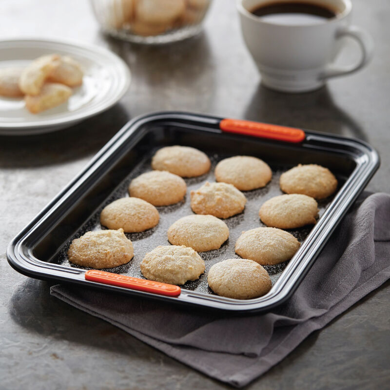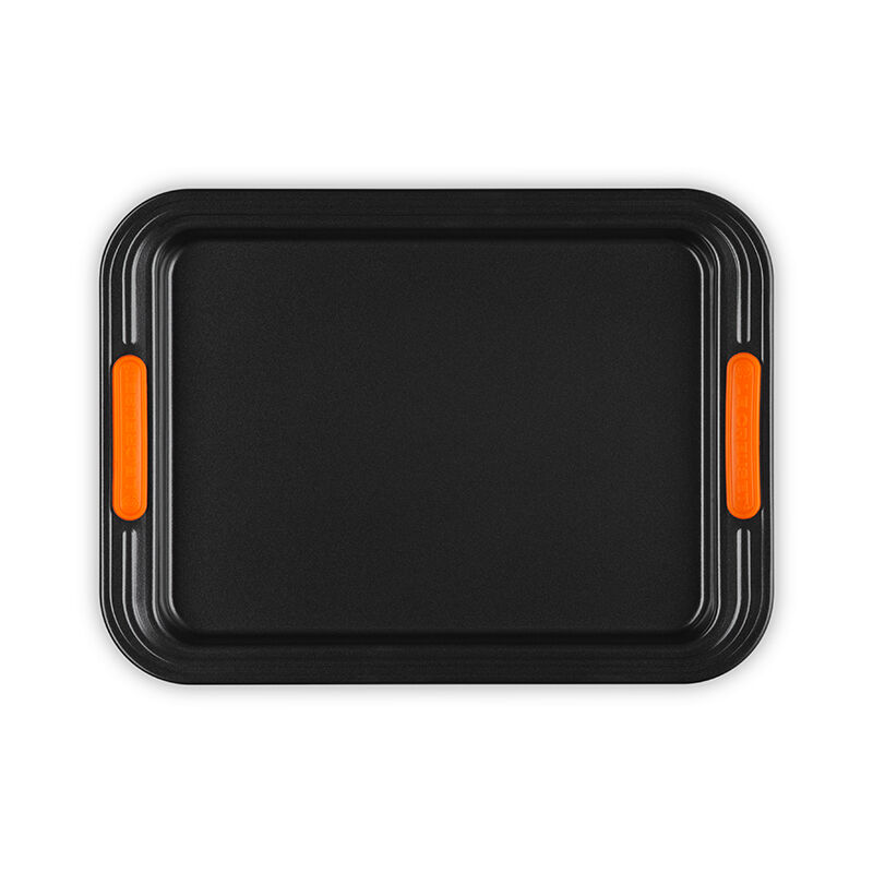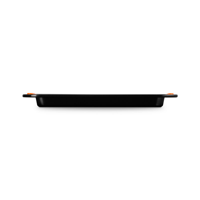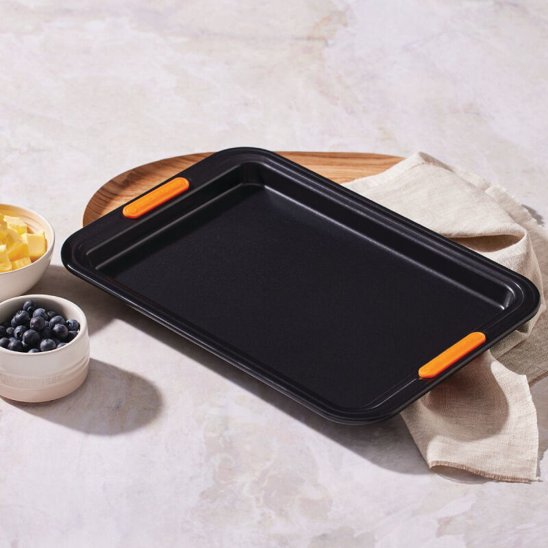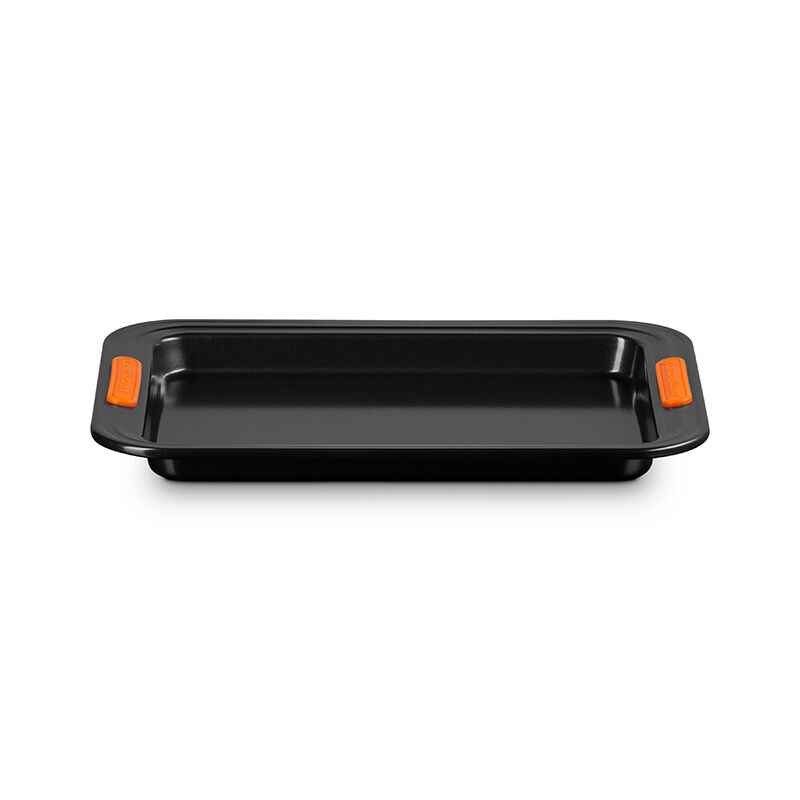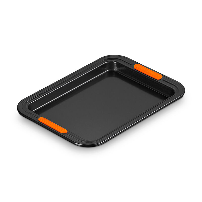 The Rectangular Baking Tray is perfect for everything from sheet cakes and brownies to roasting meat and vegetables. Slightly deeper than a Sheet Pan, an innovative silicone coating ensures easy release and effortless cleanup, while the heavy-gauge carbon steel construction delivers superior heat conduction and even baking. Lightweight and durable, the wide rims with heat-resistant silicone grips makes it easy to transfer a full pan to and from a hot oven.