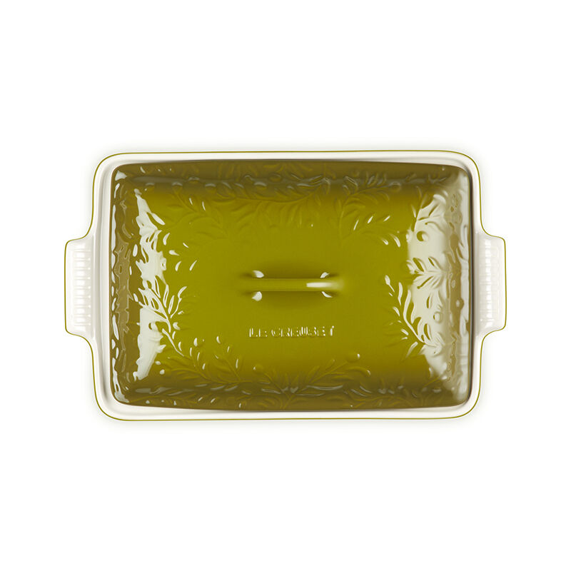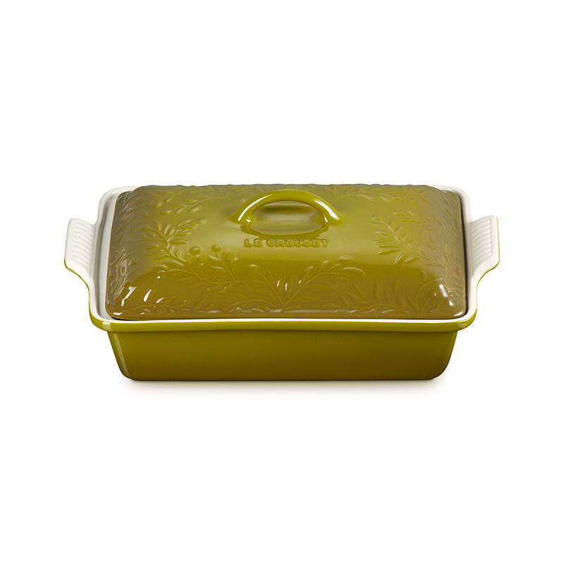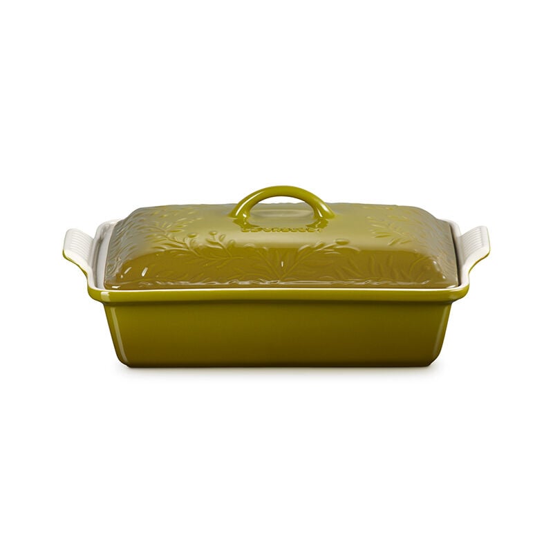 Inspired by the sun-drenched fields of Provence, the Olive Branch Heritage Rectangular Casserole baking dish is embossed with a refined olive branch motif that is a sophisticated addition to any kitchen or table. Both functional and beautiful, it¡¯s perfect for indulgent desserts, comforting casseroles, marinating meats, broiling fish and more. Not only does the stoneware lid lock in moisture and heat while baking, but makes it easy to carry dishes to potlucks and picnics or for storing leftovers ¨C or bring it straight from the oven to the table as an elegant serving piece. Crafted from the finest quality stoneware to ensure food is cooked to perfection, the baking dish features a colorful glaze that is virtually non-stick for easy cleanup.