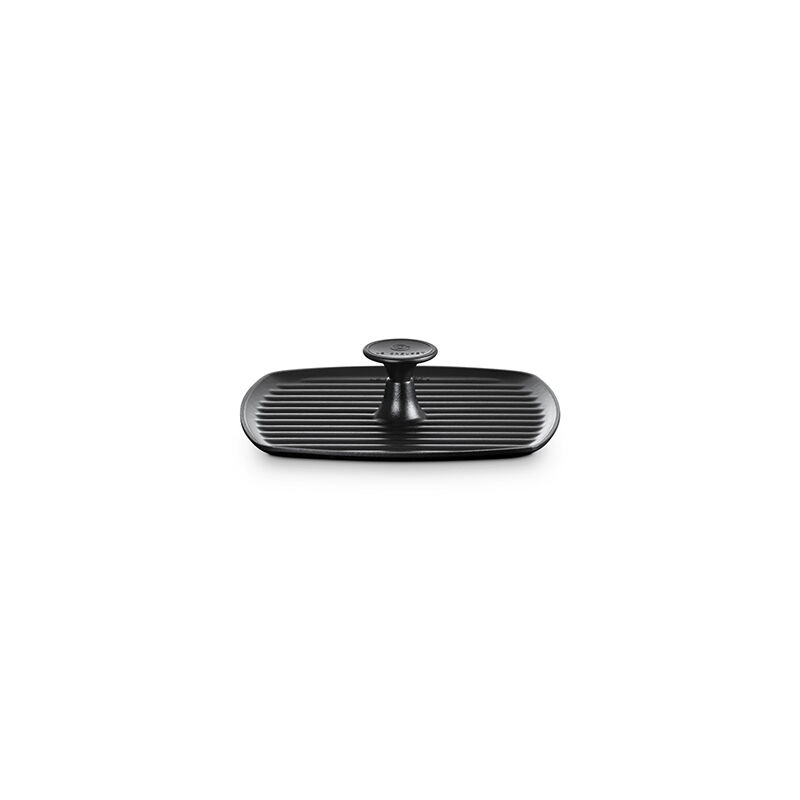 The ribbed surface of the cast iron panini press is finished with a matte black enamel that eliminates the need for the traditional seasoning and maintenance of raw cast iron. Heat first on the stovetop or oven, then place on top of sandwiches for toasted perfection.