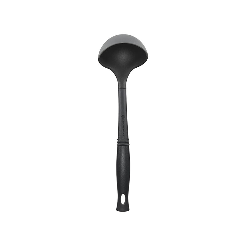 The Revolution Bi-Material Ladle has a flexible edge to easily fit into corners making it easy to ladle liquids without having to tilt the pot. The bi-material tools are crafted from a pliable combination of flexible silicone and rigid glass-reinforced nylon which allows them to conform to the edges of pots and pans while retaining strength and durability. Patented elliptical handles are thoughtfully crafted for comfort and control.