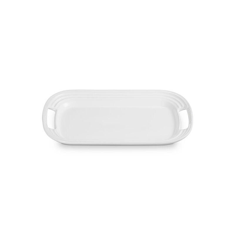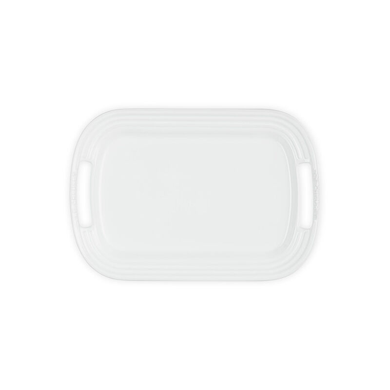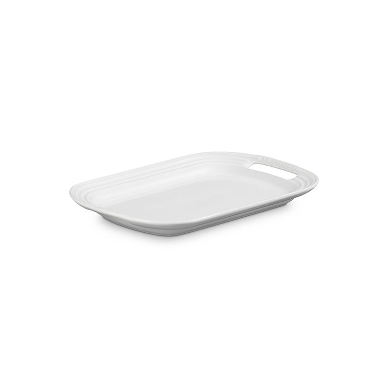 The stoneware Serving Platter features ridged edges that slope upward to contain food, while two wide handles are cut into each end to ensure a steady grip when carrying heavier foods like roasts or poultry from oven to table. Crafted from premium stoneware in our irresistible colors, the serving platters are part of our tableware collection and finished with a vibrant glaze which is easy to clean, dishwasher-safe, and resistant to chips, scratches and stains. Designed to stay beautiful with daily use, Le Creuset???s tableware brings elegant style to every table and occasion.