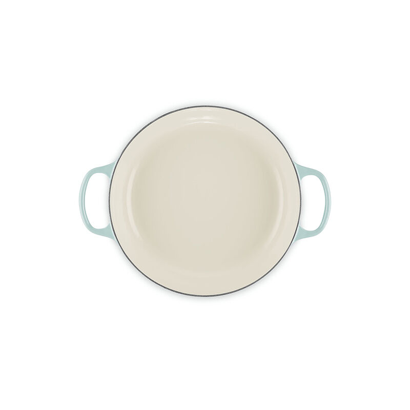 - Light colored smooth interior enamel allows easy monitoring of cooking progress