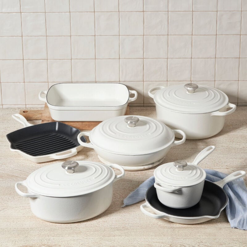 The Signature Enameled Cast Iron 11-Piece Ultimate Cookware Set features our best-selling pots and pans, including our iconic Dutch Oven and highly-rated Signature Skillet and Braiser. Whether just starting to build your Le Creuset collection or adding to an existing collection, this versatile set covers the essentials that every kitchen needs plus a few of our favorite pieces. It also makes an exceptional gift for weddings, showers, housewarming and for the person who loves to cook and entertain.