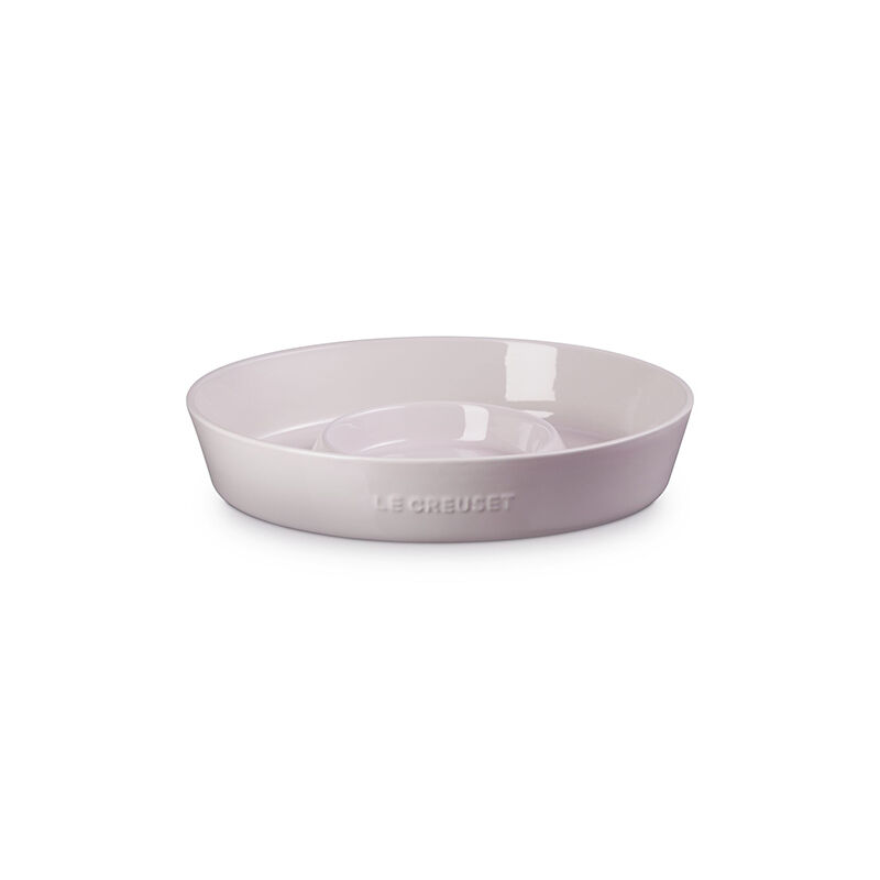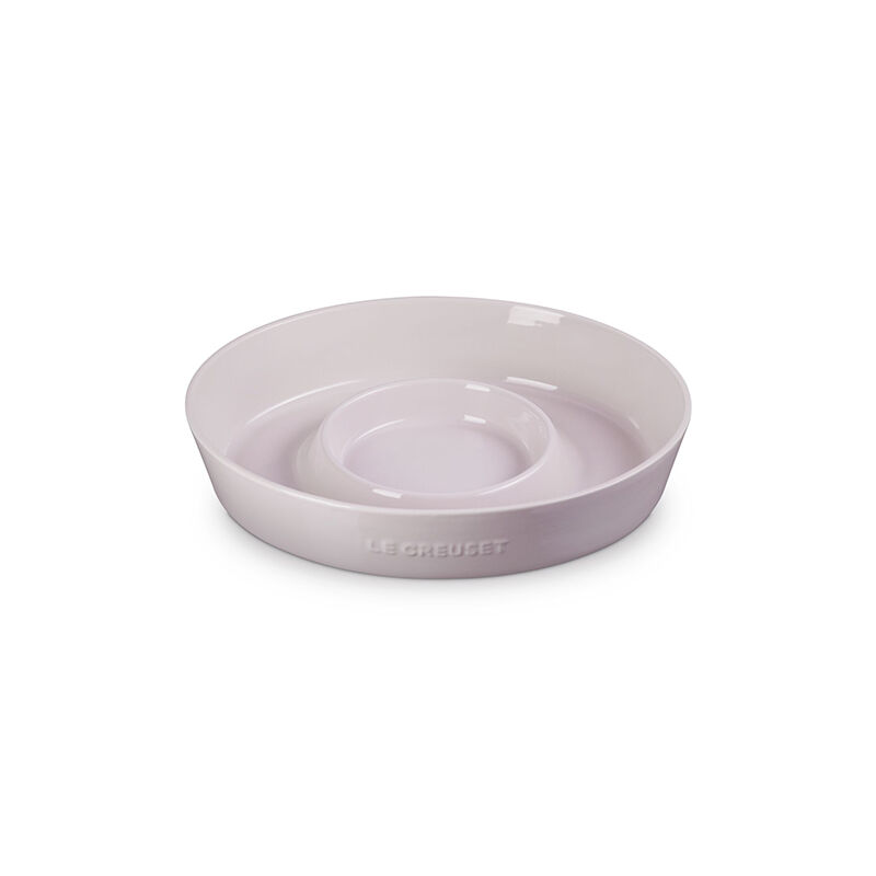 • Platter cradles a 24 oz. Mini Cocotte, allowing for easeful preparation and storing of dips and sides