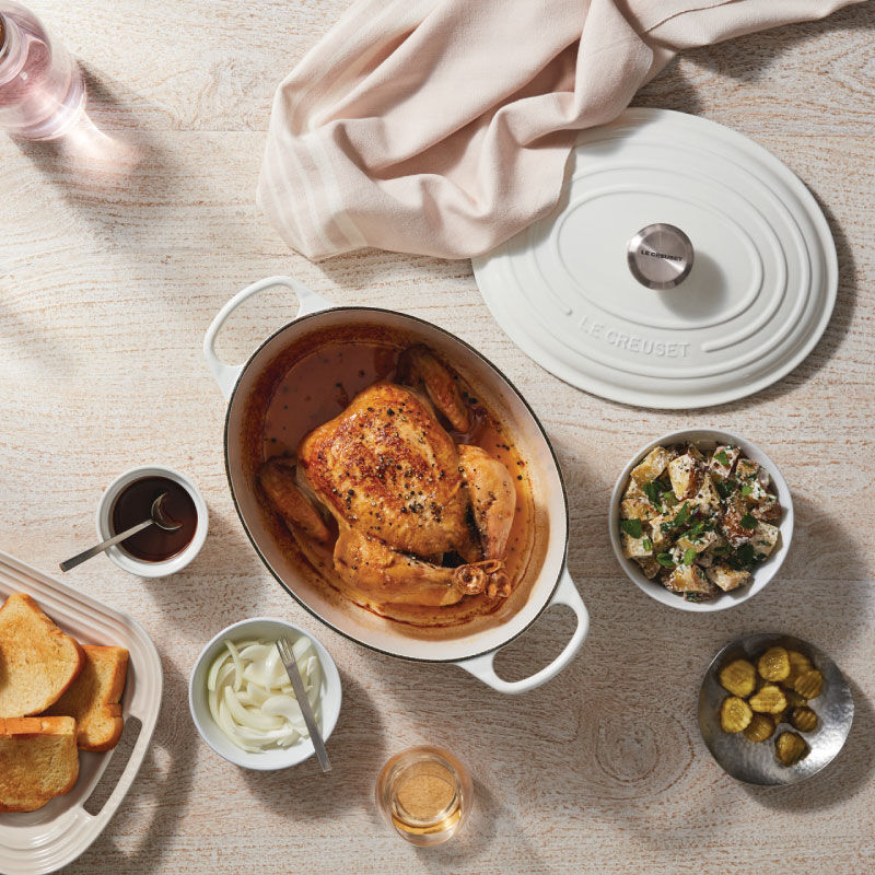 The iconic Le Creuset Dutch oven is indispensable in the kitchens of home cooks and professional chefs alike. Expertly crafted from enameled cast iron, the everyday versatility of the Dutch oven makes it ideal for everything from slow-cooking and braising to roasting, baking, frying and more. The oval shape is particularly suited for larger cuts of meat, whole chickens and for baking oval-shaped loaves of bread.
