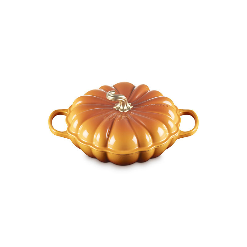 Inspired by a timeless fairy tale design and the brilliant colors of autumn, the Signature Pumpkin Braiser is a delightful seasonal addition to your kitchen and table. With its shallow, ribbed design and hand sculpted stainless steel figural knob, the wide base allows ingredients to be placed in a single layer for searing without crowding; once liquid is added, the domed lid circulates steam to lock in moisture and flavor. Crafted from our legendary enameled cast iron, it has exceptional heat distribution and retention qualities for even heating without hot spots, and locks in moisture and flavor to produce superior results from stove to oven to table. Designed for generations of durability, the easy-to-clean vibrant porcelain enamel requires no seasoning and minimizes sticking.