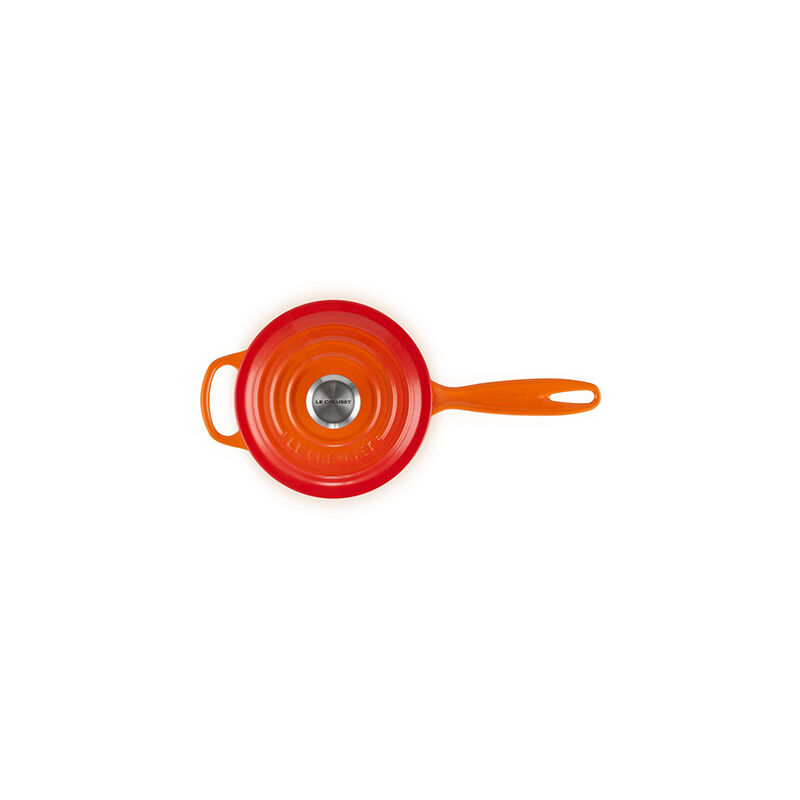 The enameled cast iron Signature Saucepan is a kitchen staple perfect for making sauces, but also for side dishes, preparing grains, poaching, simmering and reheating. The smoothly curved interior and rounded base are ideal for stirring and reducing sauces, while an extended helper handle and a contoured main handle provide added control for maneuvering from the kitchen to the table.
