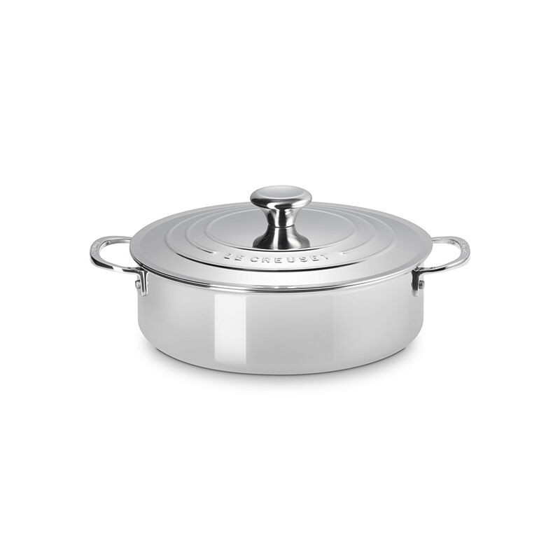 The Signature Stainless Steel Rondeau is ideal for everything from searing and saut¨¦ing to braising and simmering. The versatile shape is a chef¡¯s favorite, with deep sides to hold large batches of soups and stews, and a generous wide cooking surface ideal for reducing richly flavored stocks and sauces. Radiant and durable, the triple layer construction features a full base-to-rim aluminum core for superior heat distribution, while the lightweight titanium-infused stainless steel exterior resists scorching and corrosion at higher temperatures. Innovative details such as a dripless pouring rim save valuable prep time and make cleanup a breeze.