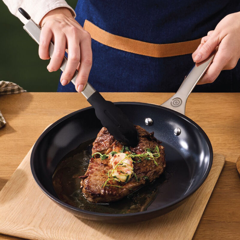 Keep hands clean and safely away from hot surfaces with these stainless steel tongs. Silicone heads handle food gently without piercing or tearing delicate foods. Handles lock for compact storage.